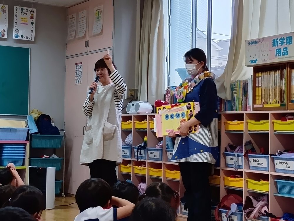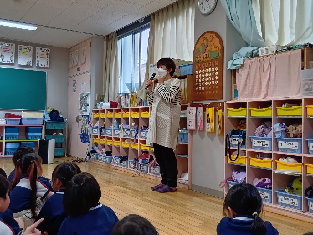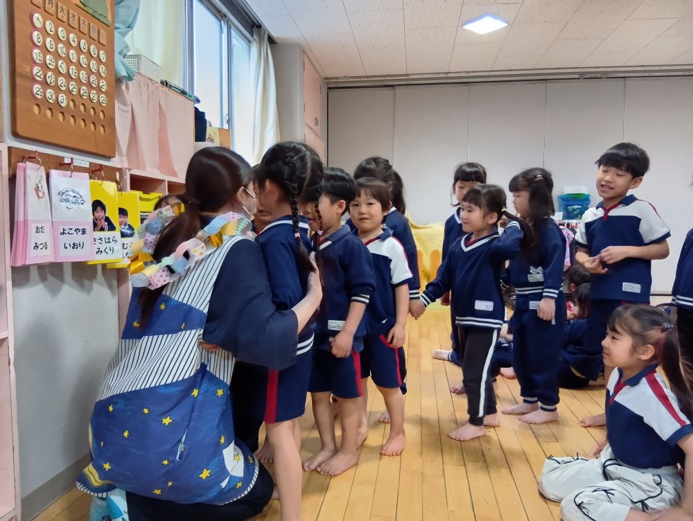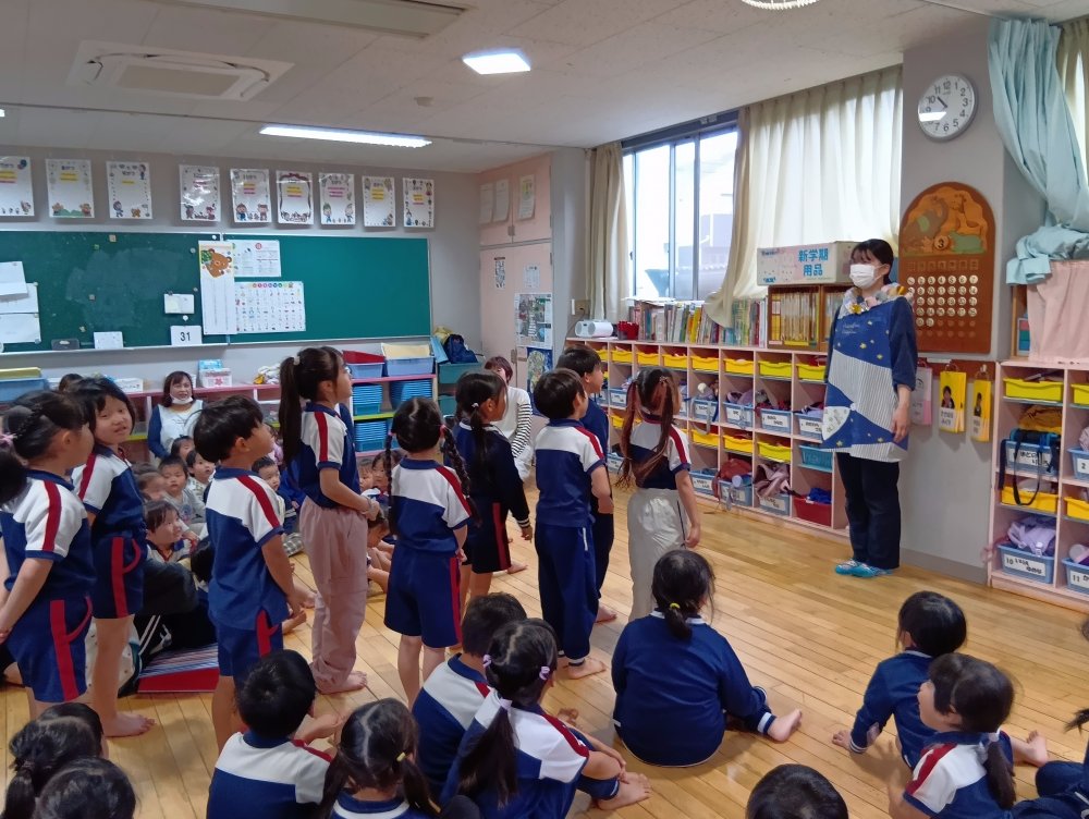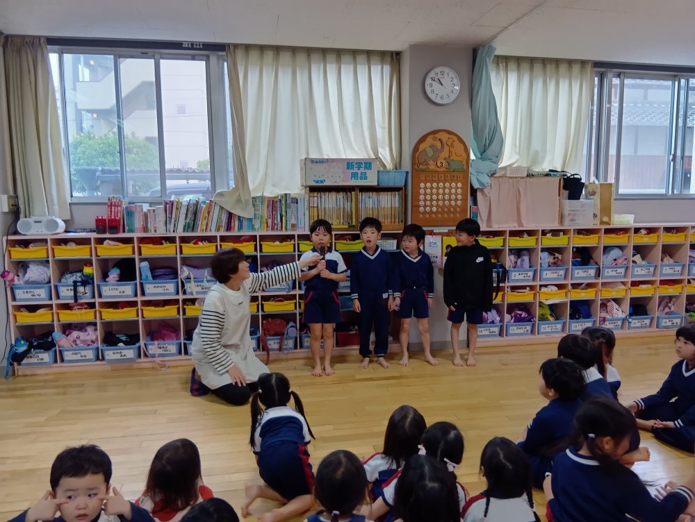 みんなの前で自己紹介、どこの小学校に行くのか、保育園で楽しかったことを
