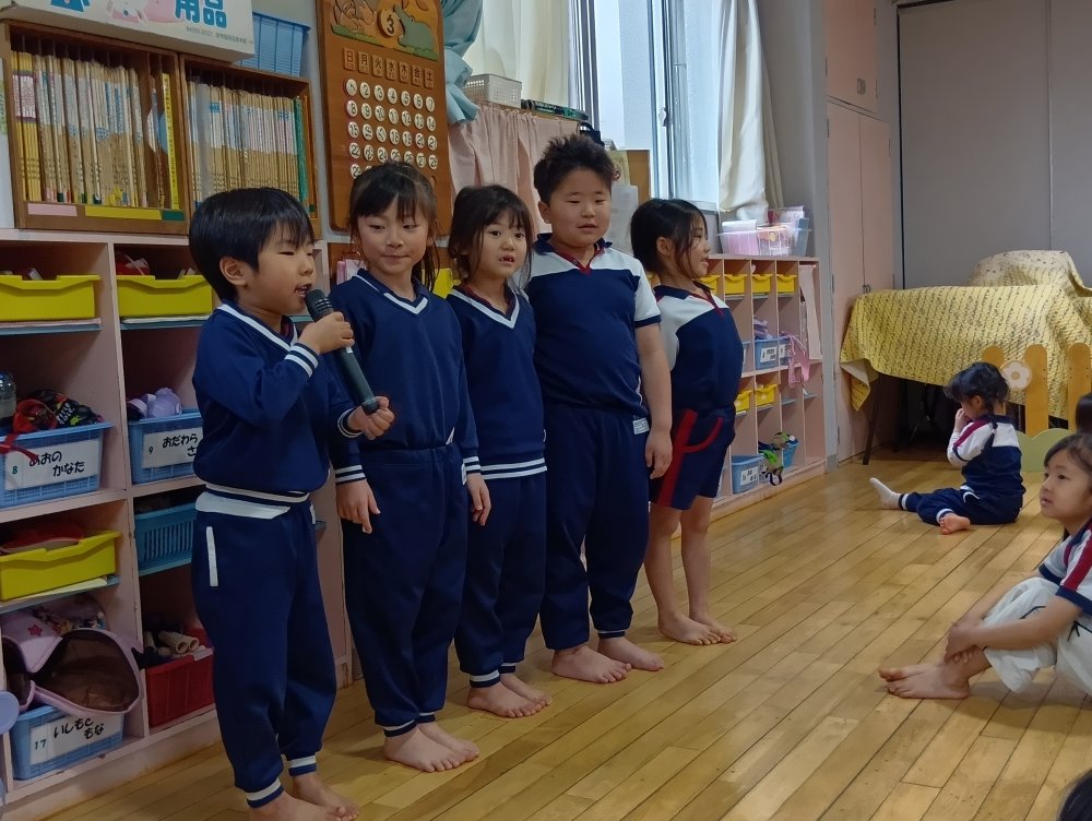 今年度最後の園歌と朝の歌を元気いっぱい歌いましたよ(*^-^*)