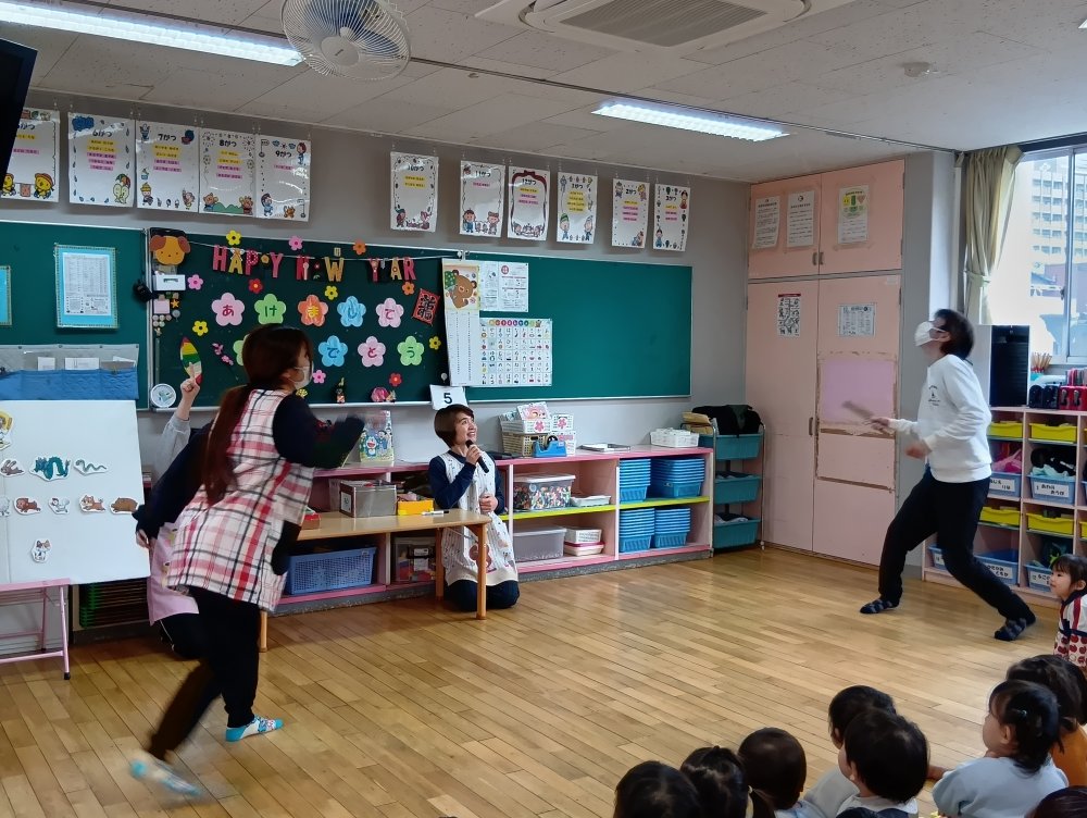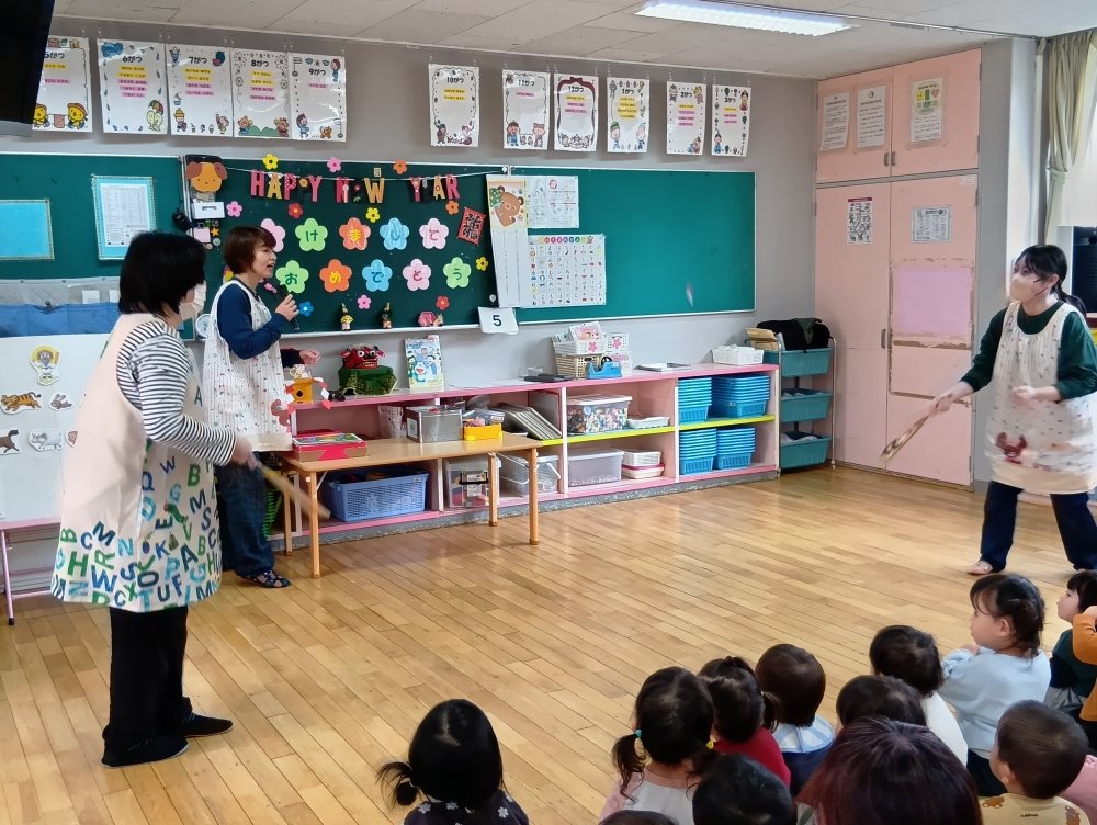 元気に歌を歌った後まずはおせち料理やお正月飾りの意味などのお話がありました📒