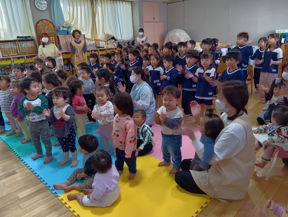 季節の歌を歌ったり誕生日のお友だちの紹介をしました(^^♪