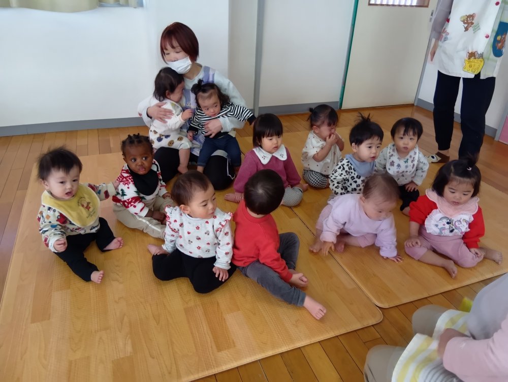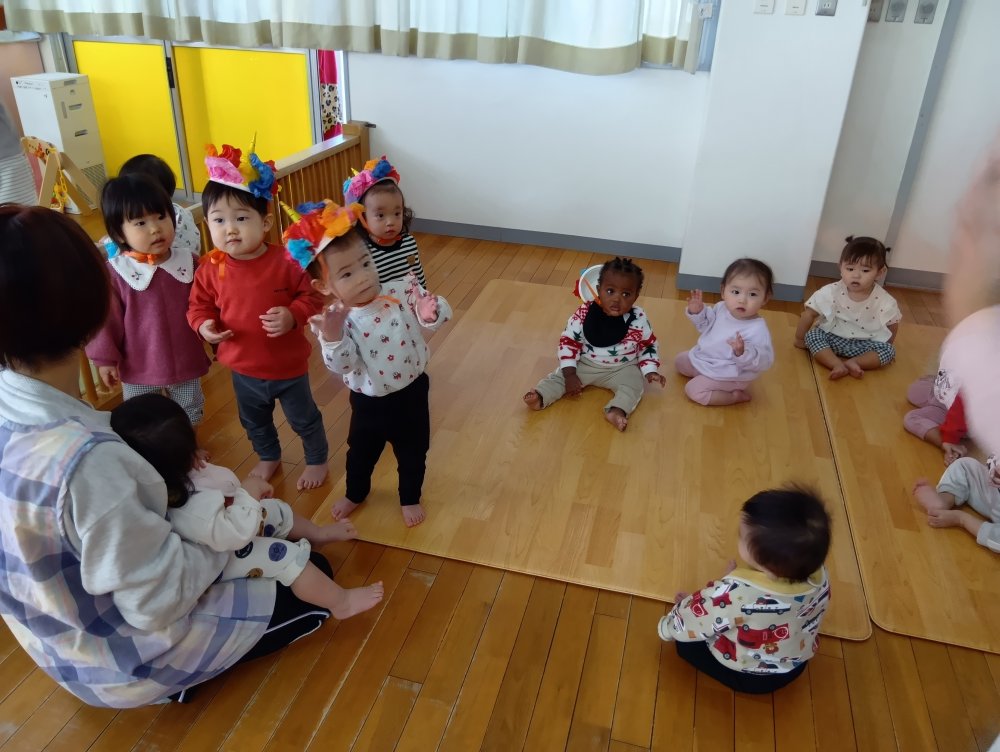 パネルシアター「豆まき」を見たり、「豆まき」の歌をうたいましたよ(*'▽')