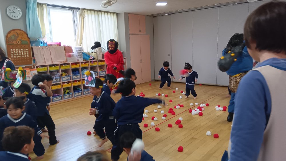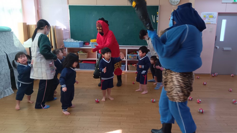 先生たちと一緒に豆まきをしましたよ😊