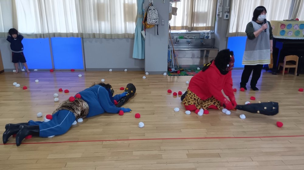「鬼は外!」と言いながら投げ鬼をやっつけます🔥