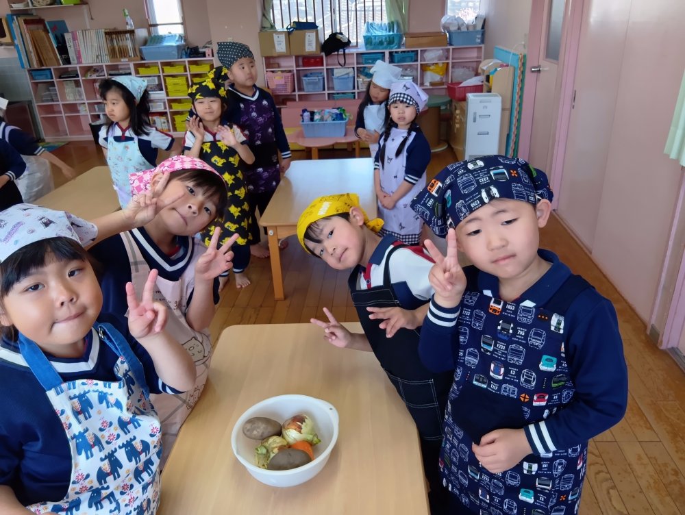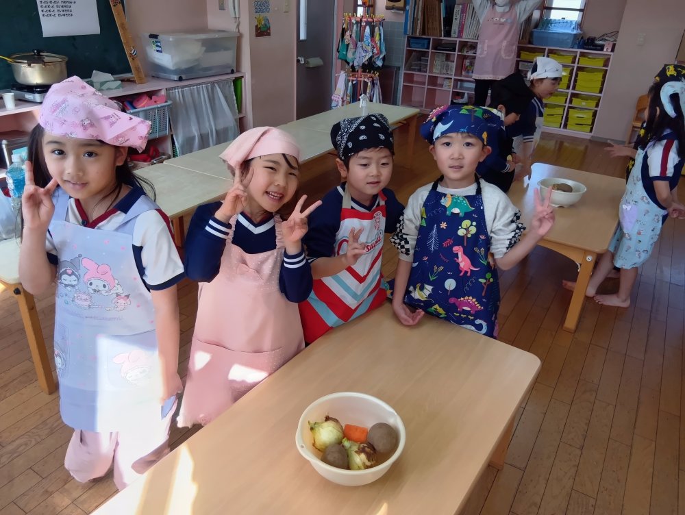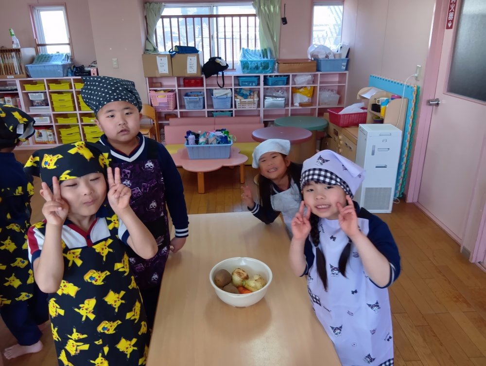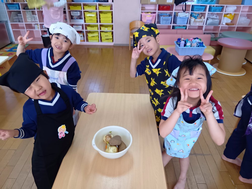初めてのカレーライスクッキングにワクワクしているひまわり組さんです🌻