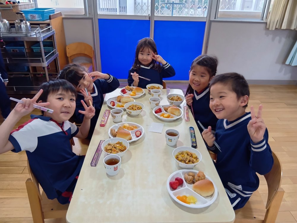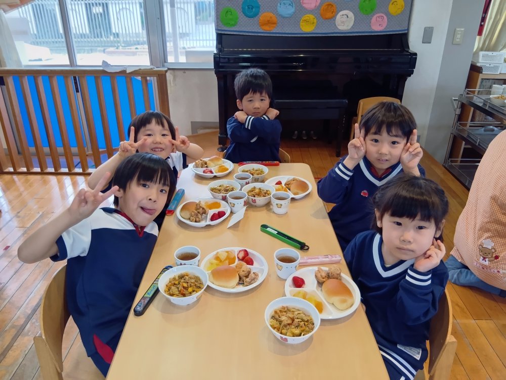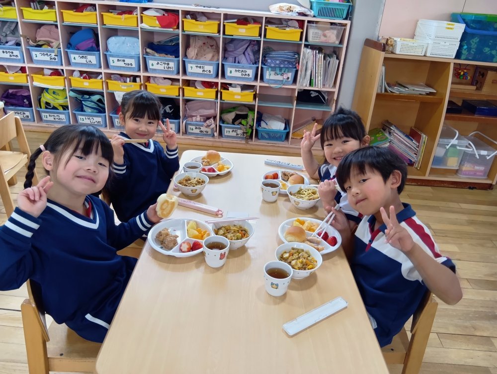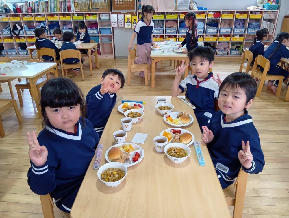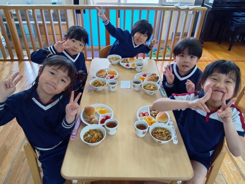 お楽しみ会の後以上児さんはバイキング給食を食べました✨