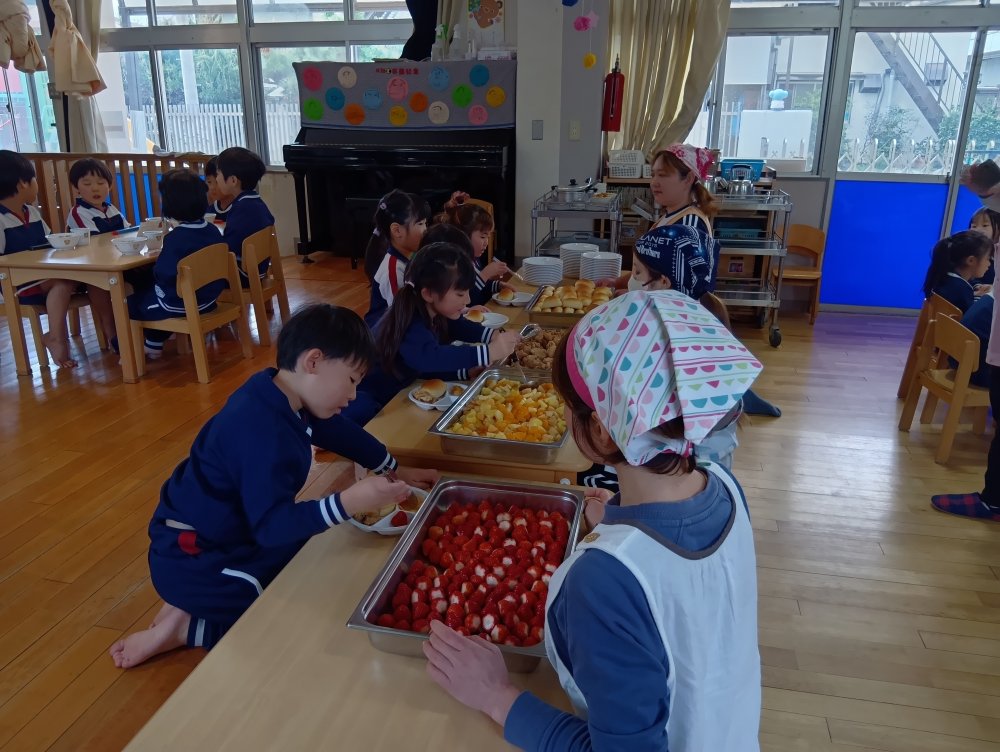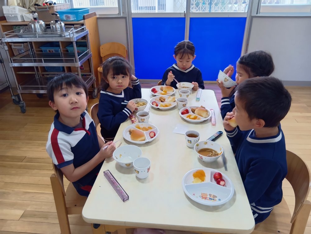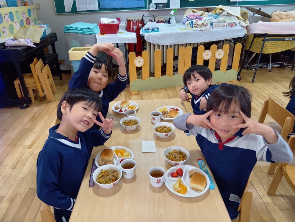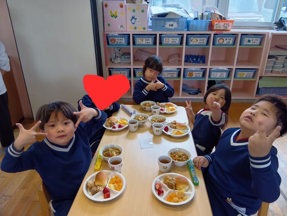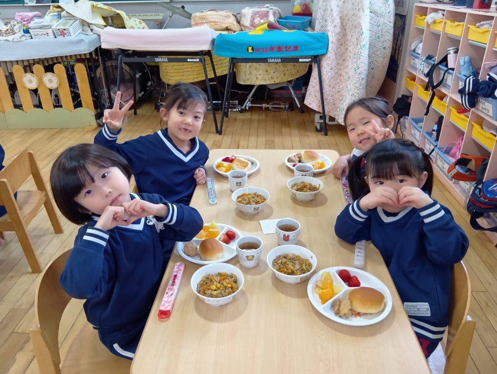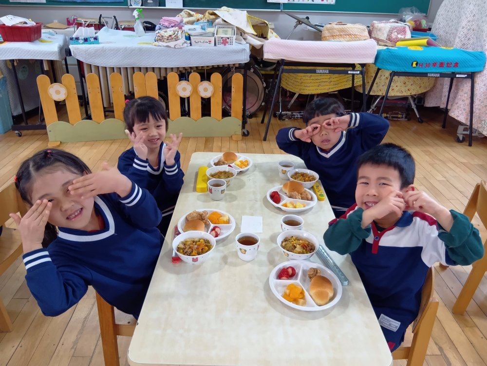お楽しみ会の後以上児さんはバイキング給食を食べました✨